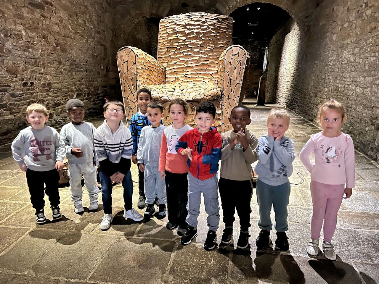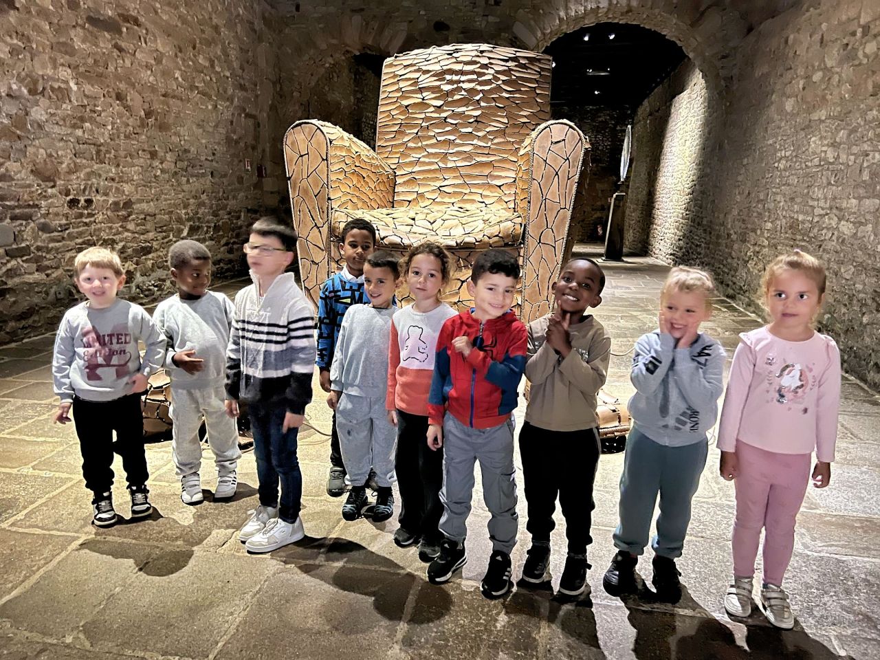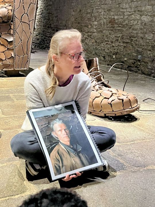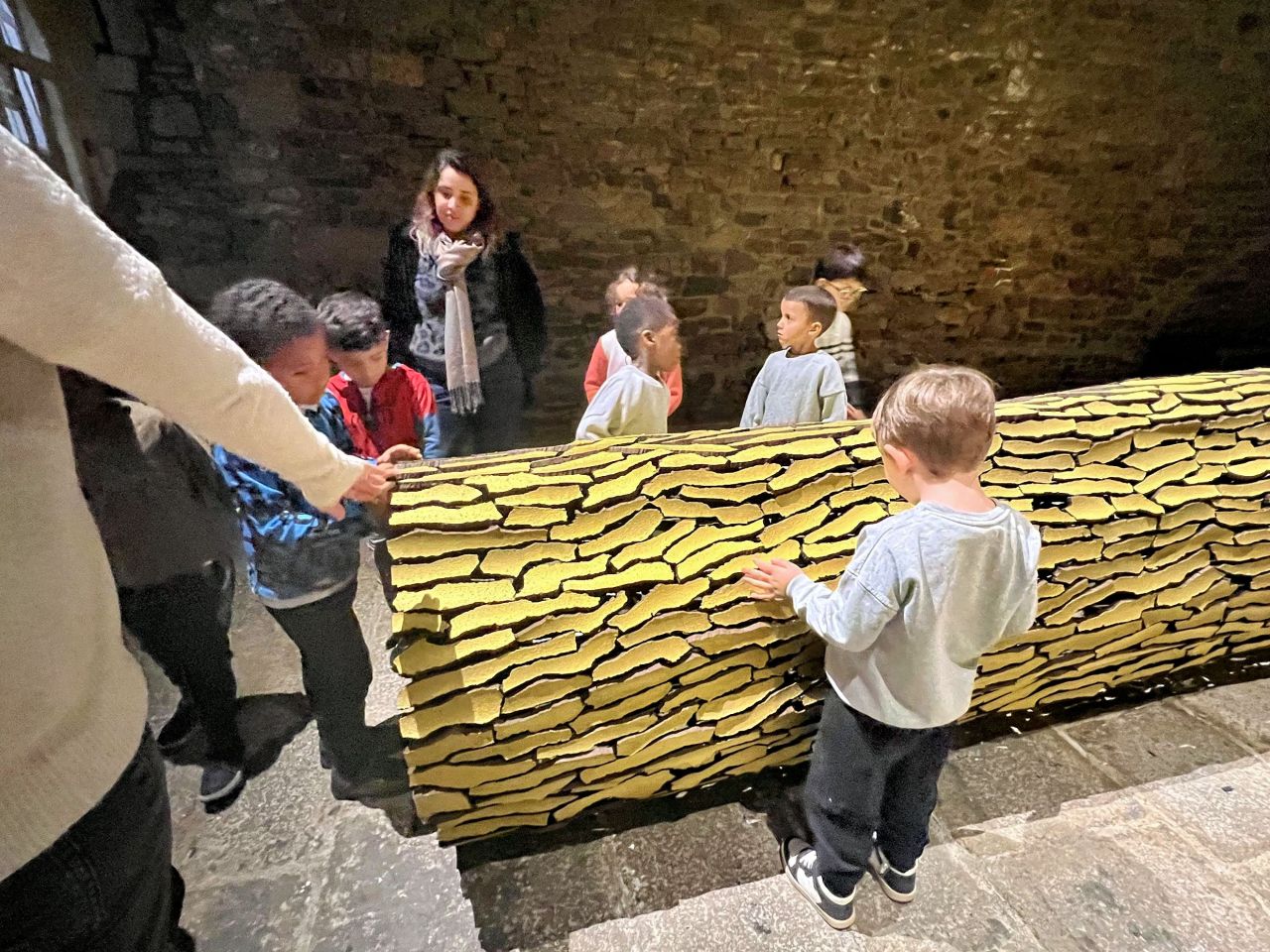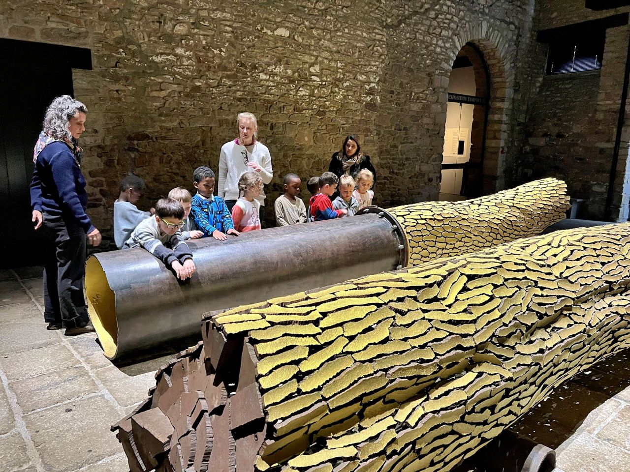 Nous avons visité l’exposition de Marc Didou “ Éloge de la craquelure ” . Nous étions très impressionnés par les grandes pièces craquelées : fauteuil , paire de chaussures et troncs .