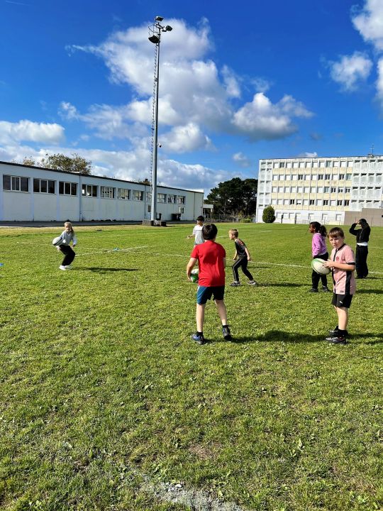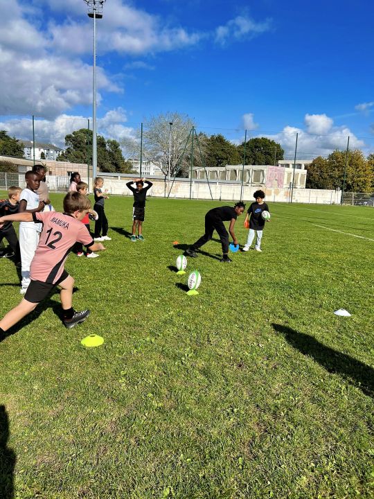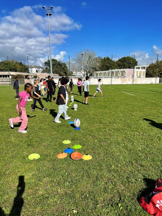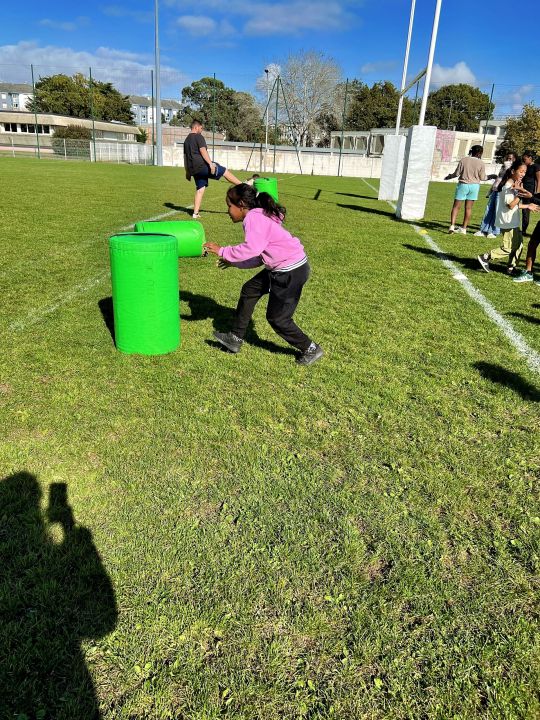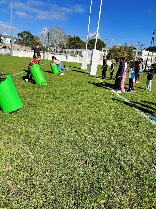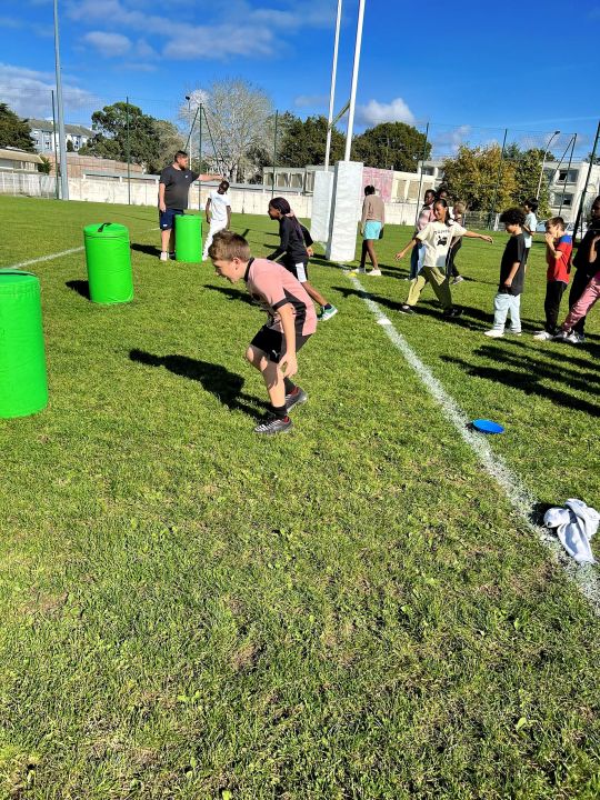 Puis ils ont fait leur troisième séance de rugby avec Briac ( éducateur au RCV)