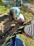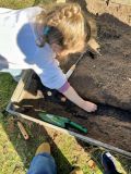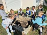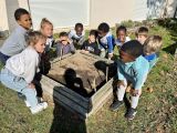 Nous avons d’abord désherbé notre carré potager . Ensuite nous avons travaillé la terre puis nous avons fait un sillon pour y mettre les bulbes de tulipes . Il faudra attendre le printemps pour cueillir nos fleurs !